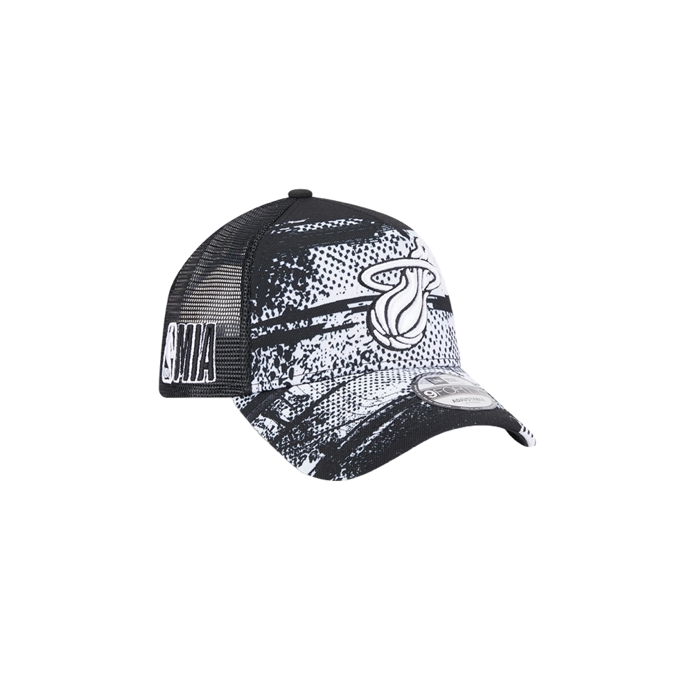 New Era Miami HEAT 2024 Tipoff Black and White Trucker Snapback Snapbacks New Era