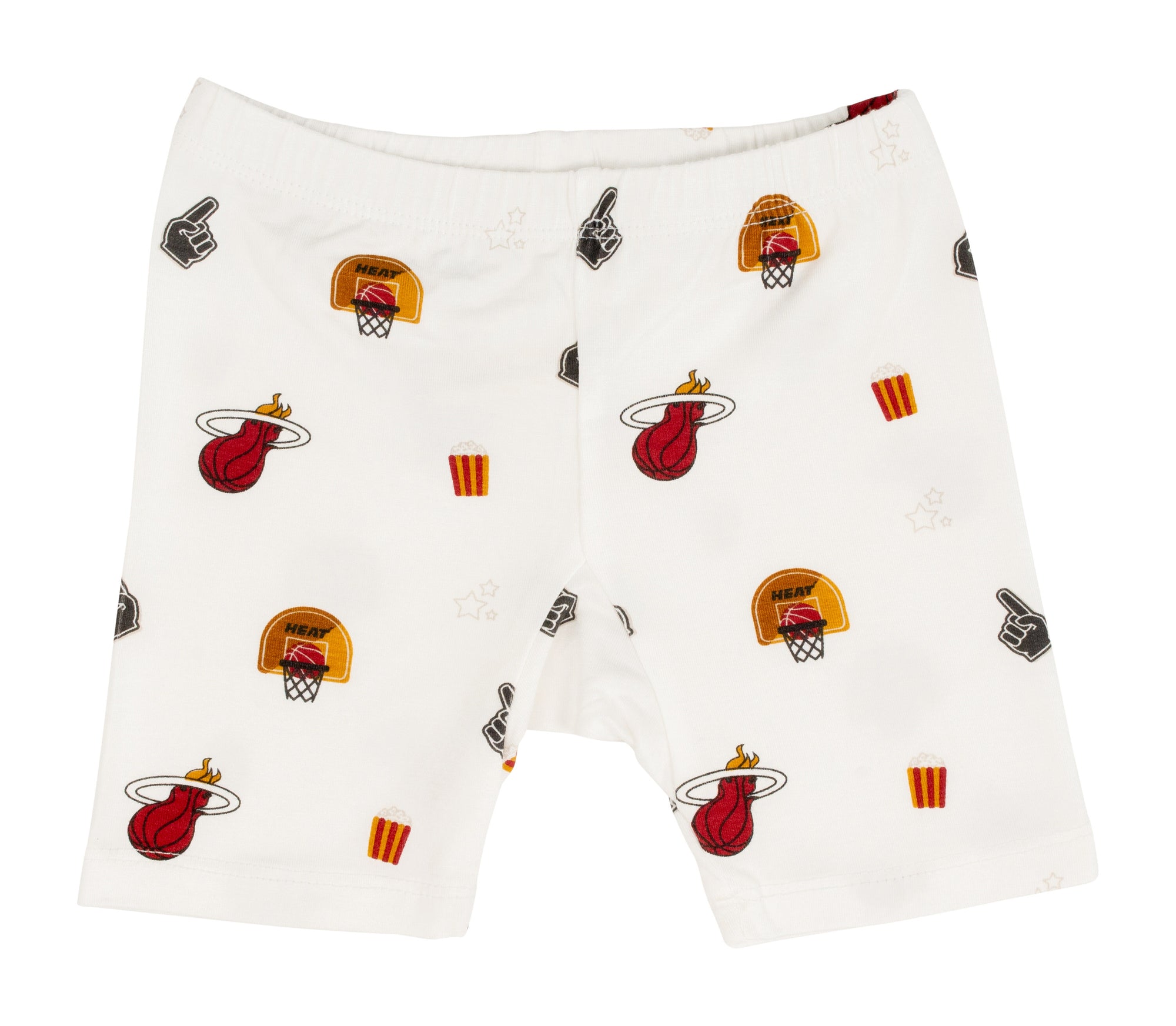 Toddler white shorts with Miami HEAT logos and basketball-themed graphic prints. - Court Culture x Kyte Baby Game Day Cloud Toddler Short Sleeve PJ Set