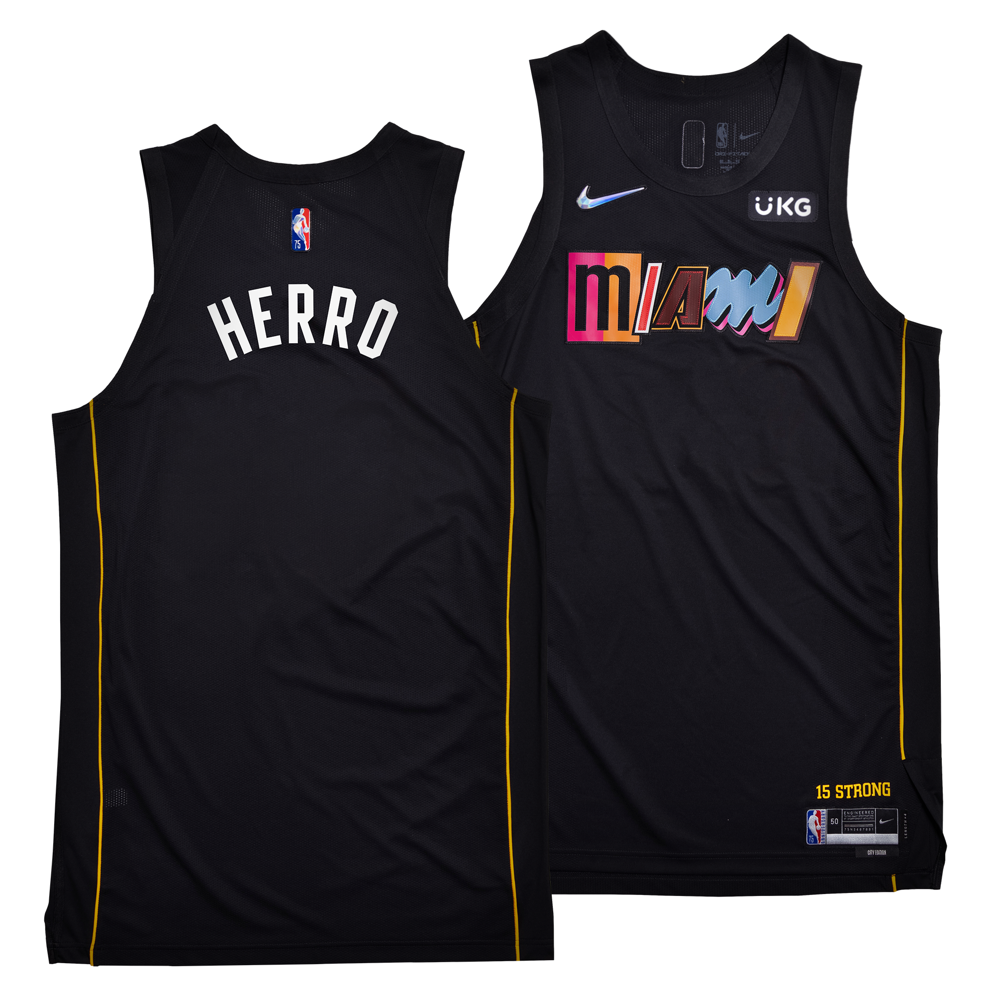 The uniform also weaves in several references to the HEAT’s Championship-winning history. On the jersey’s “anthem” spot (located just above the jock tag) appears the “15 STRONG” wordmark: a rallying cry throughout the team’s 2006 Championship run. Just below that is a list of the three years in which the HEAT have won a Championship, each stacked vertically on the shorts’ waistband. Rounding out the uniform is a thin golden stripe that frames the ensemble of elements—a nod to the infamous yellow ropes brought out seconds before “The Shot” during the 2013 Finals.