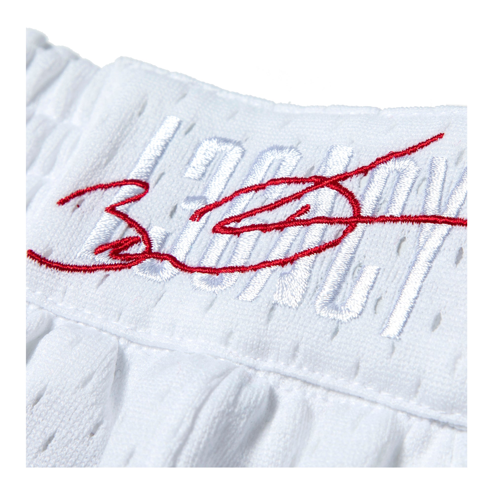 Modeled after the HEAT’s iconic throwback uniform, this pair of Court Culture-Mitchell & Ness shorts pays tribute to Dwyane Wade’s storied career with several commemorative touches, including custom-made L3GACY marks, signatures, and accolade patches embroidered throughout its design.