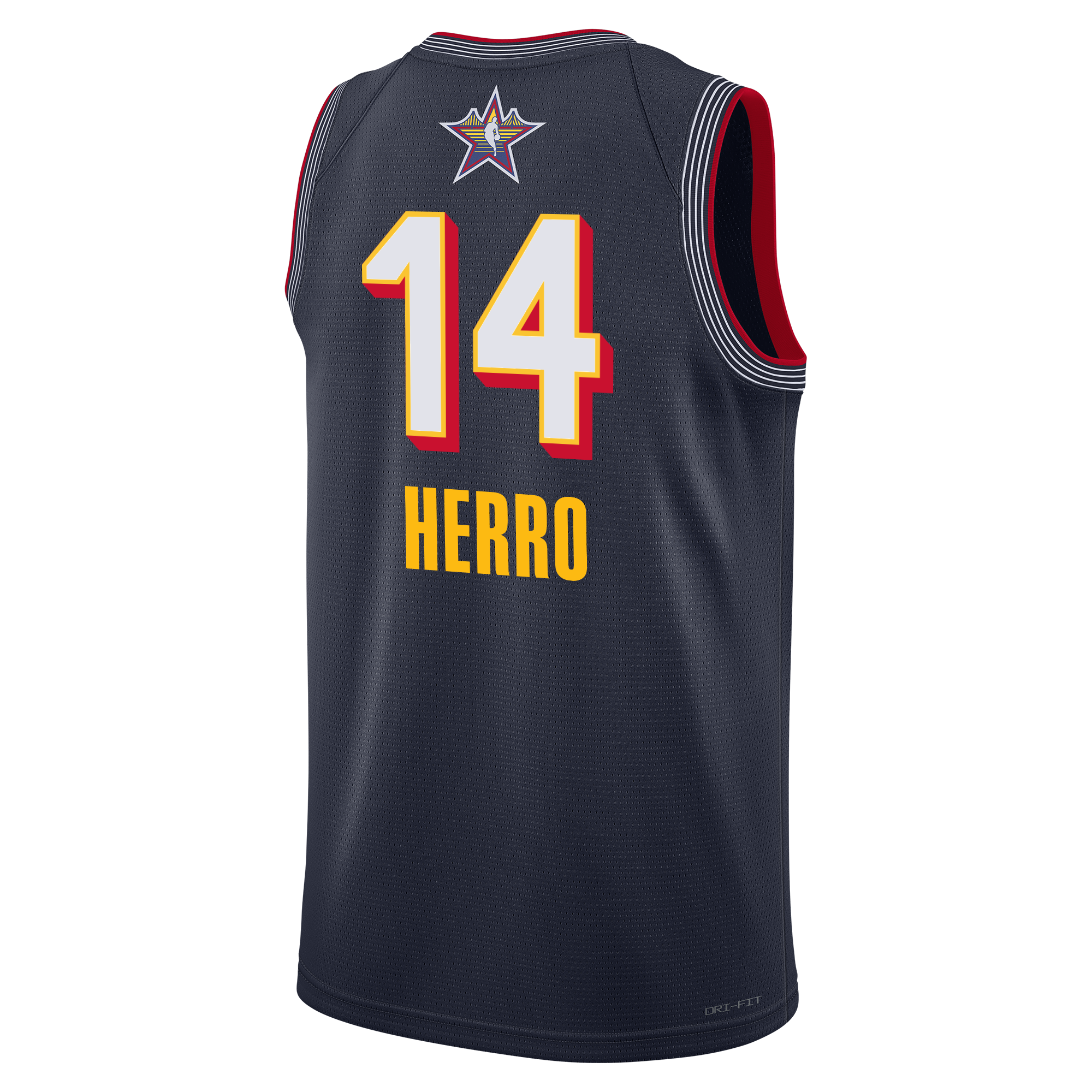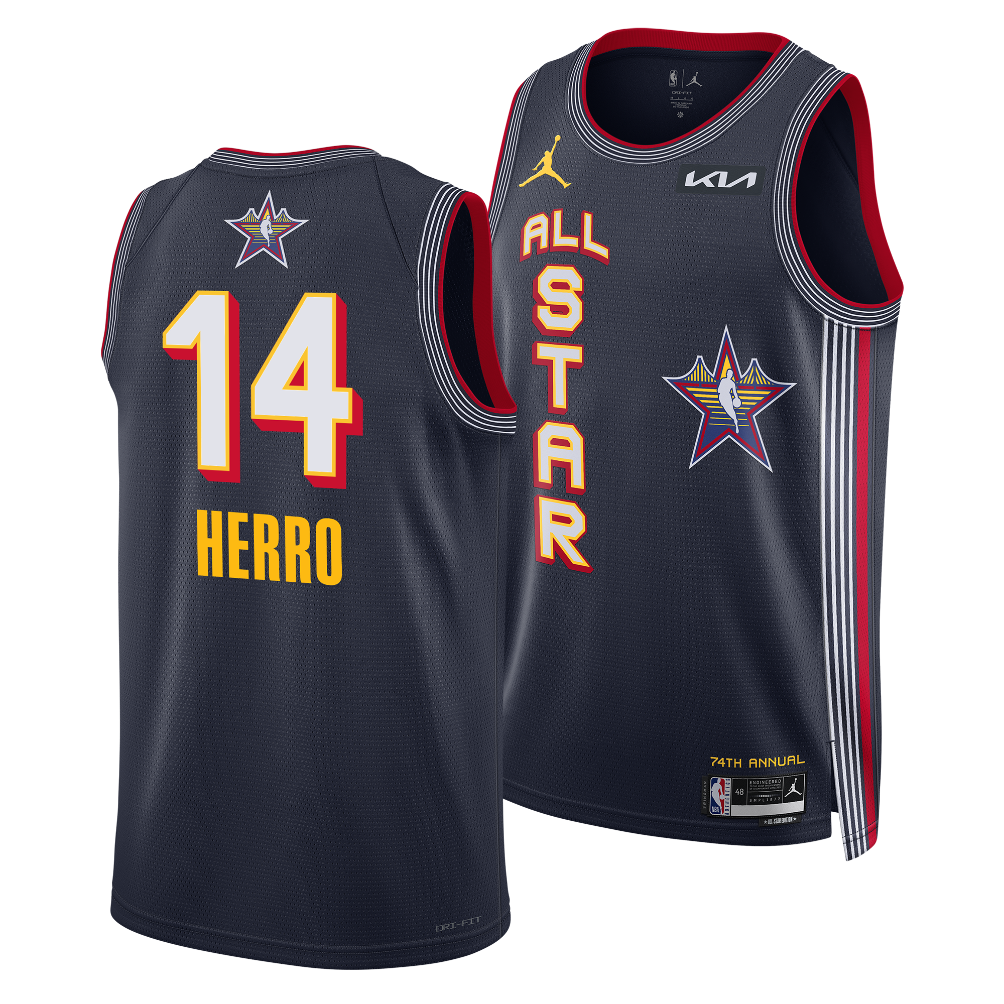Navy Tyler Herro Jordan Brand 2025 All-Star youth Swingman basketball jersey with red trim and vertical